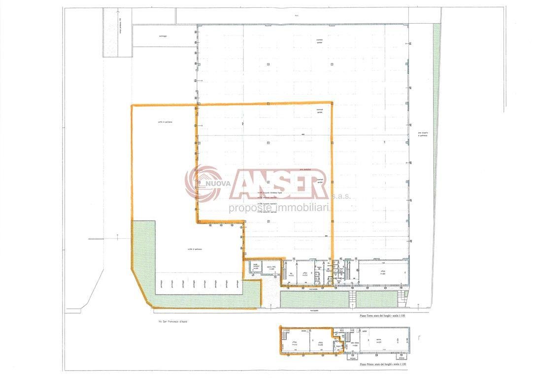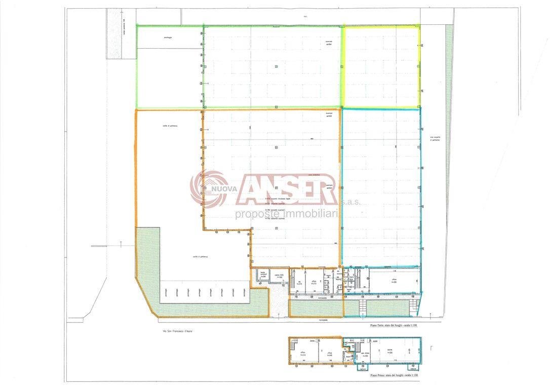 nuova costruzione CAPANNONE industriale tutto su un unico livello: mq. 1050 ca – uffici mq. 200 su due livelli - piazzale esterno privato mq. 1500 ca. - H. interna 7,50 mt. - H. sotto trave 6,50 mt – predisposizione mensole carro ponte 10 tonnellate – allacciamenti già portati all'interno. Il capannone fa parte di un complesso industriale completamente finito e funzionante nelle parti comuni, con ampi piazzali e comodo accesso per manovre automezzi: anello antincendio, cabina ENEL, recinzione, cancelli carraio e pedonale elettrificati, citofoni, sistemi di sicurezza, piazzali asfaltati, fognature. Opere di P.L. ultimate con numerosi parcheggi esterni, in parte privati dedicati al complesso e in parte pubblici, con pavimentazione drenante e piantumazione come richiesto dalle competenti autorità. Il complesso è collocato in prossimità delle principali vie di comunicazione. Le foto pubblicate dell'interno del capannone si riferisce all'immobile non ancora frazionato. Le foto del capannone finito sono esemplificative delle finiture. Le metrature pubblicate sono indicative.