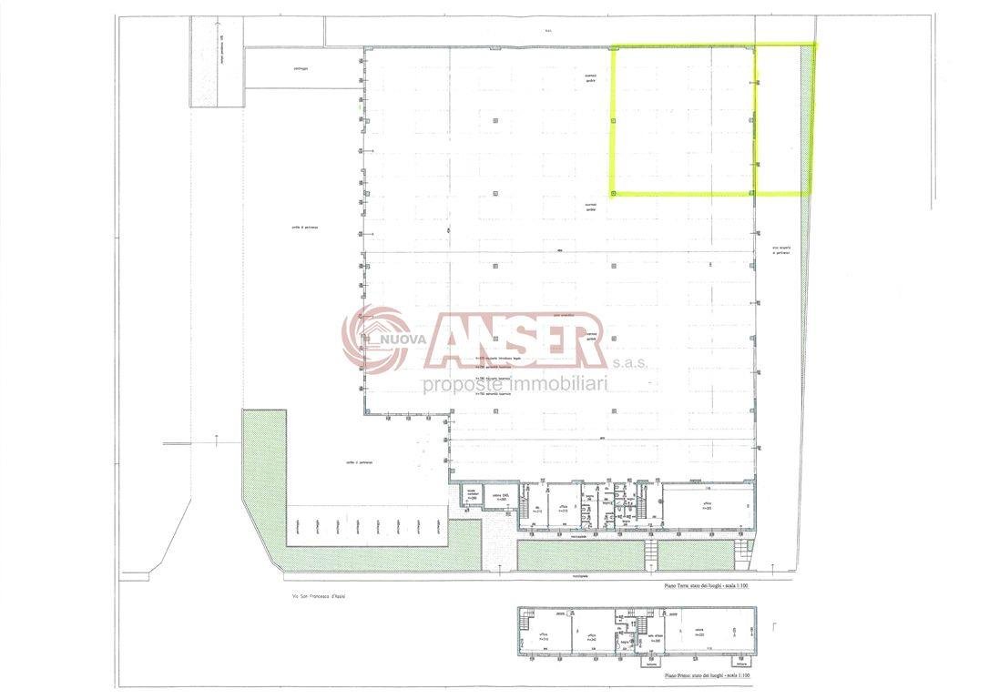 nuova costruzione CAPANNONE industriale tutto su un unico livello: mq. 310 ca – area esterna mq. 200 ca - H. interna 7,50 mt. - H. sotto trave 6,50 mt – predisposizione mensole carro ponte 10 tonnellate – allacciamenti già portati all'interno. Il capannone fa parte di un complesso industriale completamente finito e funzionante nelle parti comuni, con ampi piazzali e comodo accesso per manovre automezzi: anello antincendio, cabina ENEL, recinzione, cancelli carraio e pedonale elettrificati, citofoni, sistemi di sicurezza, piazzali asfaltati, fognature. Opere di P.L. ultimate con numerosi parcheggi esterni, in parte privati dedicati al complesso e in parte pubblici, con pavimentazione drenante e piantumazione come richiesto dalle competenti autorità. Il complesso è collocato in prossimità delle principali vie di comunicazione. Le foto pubblicate dell'interno del capannone si riferisce all'immobile non ancora frazionato. Le foto del capannone finito sono esemplificative delle finiture. Le metrature pubblicate sono indicative.